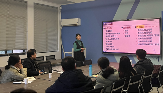 朱平平教授在讲座中详细地介绍了高校教师教学创新大赛的相关背景、参赛材料准备及评价维度等关键内容,为在座的教师们提供了宝贵的参赛指导。接着,朱教授结合自己在“高分子物理”课程教学设计上的创新实践,详细阐述了其教学设计创新的具体做法和取得的成效。最后,她还就两节课实录教学内容的选取和相关建议进行了分享,为教师们提供了实用的教学参考。