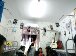 评选过程中,参赛寝室的创新设计和精心布置吸引了全体评委们,参赛寝室的寝室长详细的介绍寝室设计的主题及寝室里发生的故事。