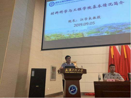 典礼在雄壮的国歌声中拉开序幕。院长江学良首先代表材料学院全体师生对2019级新生的到来表示热烈的欢迎。他从学科建设、人才培养、科学研究、师资队伍和社会服务等方面简要介绍了学院的基本情况。他勉励新同学们要善于利用材料学院的学科专业优势,继承和发扬学院良好的院风、学风,勤于学习、善于专研、勇于探索,以实际行动去创造更加美好的明天。