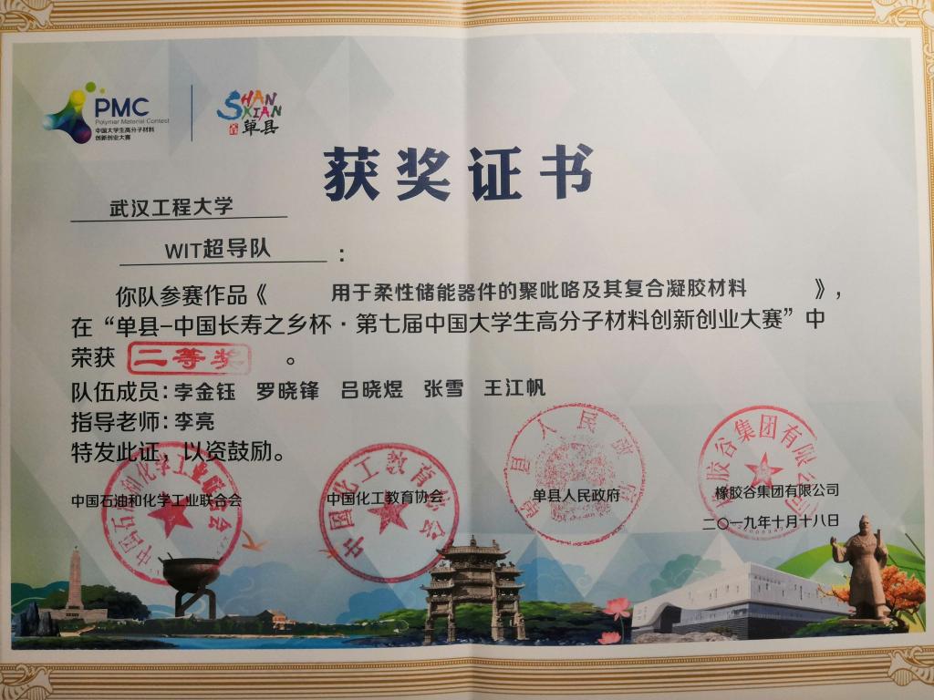此次大赛不仅向国内其他高校展示了bw必威西汉姆联官方网站的科研实力、学生扎实的专业基础与良好的精神面貌,更充分肯定了bw必威西汉姆联官方网站“创新创业”教育的成效、体现了武汉工程大学学科专业水平和人才培养质量。赛前,学校和学院都高度重视此次比赛,为参赛教师和学生提供充足的保障,材料学院精心组织了第七届PMC大赛校内海选,共有5支团队入围。经过各参赛队伍指导老师和团队成员的全力备战,最终在大赛取得了优异成绩。