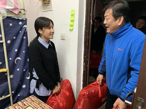 学院领导和老师一行先后走访巡查教辅7栋、泰塑9栋学院学生宿舍,查看宿舍设施是否存在安全隐患,重点对宿舍用水、用电、卫生、安全等情况进行了巡查和现场指导。学院领导一行查看和慰问了部分家庭经济困难学生的学习和生活情况,并为家庭经济困难学生送上爱心棉被。领导们与同学们亲切交流并嘱咐同学们要和睦相处、相互帮助,养成良好的生活习惯,积极营造健康的宿舍文化;要合理规划好大学生活,积极参与各类集体活动,关心关注学院发展。恰逢气温突降,学院的爱心棉被给材料学子们带来了寒冬里的一丝暖意。