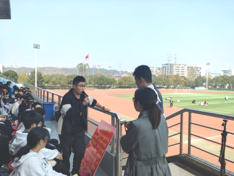 他提到,大一的关键词是探索,要不断尝试探索,为今后找好方向;大二的关键词是选择,要找到兴趣点,明确未来规划;大三的关键词是奋斗,要由更高的目标和要求;大四的关键词是圆梦,实现大一的目标并展望更远的未来。
