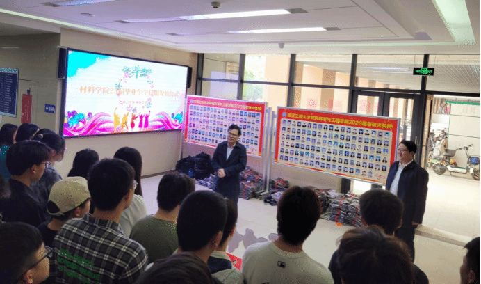 (通讯员:田明华)石榴红似火,毕业味渐浓。这个毕业季,材料学院23届毕业生收到了一份特别的毕业礼——定制学位服。5月23日一早,学院在一楼大厅举行23届毕业生学位服赠送仪式学院党委书记王涛、院长江学良、副书记张琼为毕业生代表送上了学院定制的学位服,一共发放学位服600套。