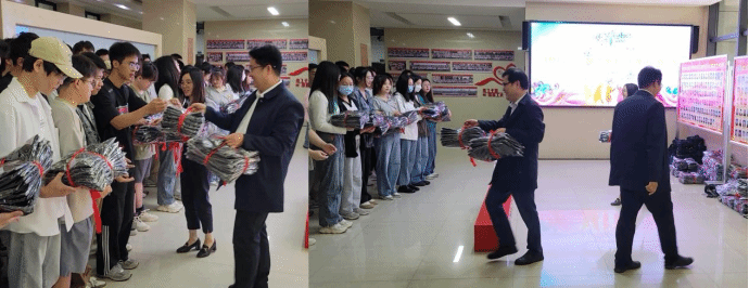 赠送仪式上,王涛书记寄语在场的毕业生代表说:一是希望同学们不忘初心、牢记使命,不论是走向工作岗位还是继续深造,将来都将成为各行各业的中坚力量,一定不要忘记身上的责任和使命,要主动担负起祖国复兴、强国建设的重任;二是希望同学们不忘师恩,常回母校。小小的学位服饱含了学院对同学们的深深眷恋,也是为了留个念想,不管今后在哪里,过得怎么样,一定记得常回家看看;三是希望同学们前进,继续奋斗。未来属于青年,请同学们爱惜身体,锤炼本领,奋勇拼搏,在各自擅长的领域打拼出属于自己的精彩。
