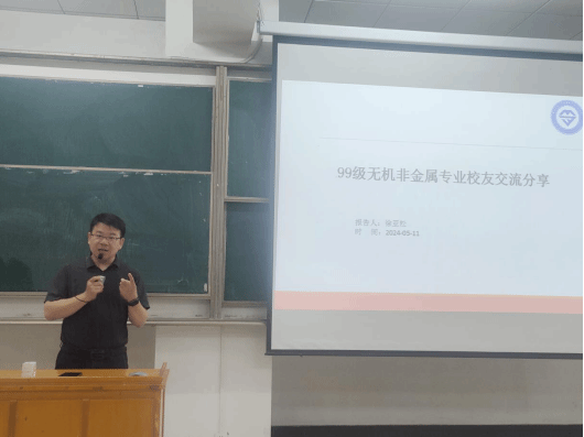 徐亚松为99级无机非专业优秀校友,现任北京搜诺思科技有限公司上海分公司质量经理。他从自己的校园生活和同学们现在的大学生活开始,介绍了关键时间节点上,世界、中国发生的大事和在校学生的关联,告诉同学们要关注变化的时代和不变的内核,增强自己核心竞争力。徐亚松还介绍了99级同学们的发展现状,鼓励同学们珍惜大学时光,将来也能取得满意的成就。最后,他用自己不断学习、不断努力的例子,给同学们提出了学好专业课、学好英语的实用建议。