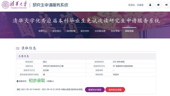 孙富昌,湖北孝感人,bw必威西汉姆联官方网站2018级英语+材料化学专业本科生。2018年9月入学以来,他的学习成绩一直位列专业第一,多次获得甲等综合奖学金、三好学生等荣誉。在刚刚结束的研究生推免工作中,他以专业第一的成绩获得研究生推免资格,并获得了北京大学清华大学两所大学的预录取通知。同时,他还获得了中国科学技术大学、武汉大学、厦门大学、中山大学、哈尔滨工业大学、电子科技大学、西北工业大学和大连理工大学等10余所国内知名高校的预录取资格。最终,他选择了北京大学