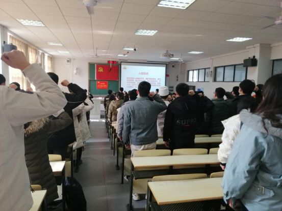 (通讯员高梦雅)1228日中午,材料学院2020年新党员入党宣誓大会在L4103教室举行。院党委书记李国林、组织员余武明、党委副书记张琼以及全体学生党支部书记出席典礼,107新党员参加典礼,典礼本科生第五党支部书记高梦雅主持。