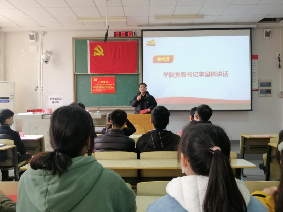 李国林书记代表学院党委对107名新党员的加入表示热烈的祝贺,并提出三点希望,与全体党员共勉:一是把牢理想信念是思想和行动的“总开关”,做到心中有党、坚定信念,在对党忠诚上树标杆、做表率二是严守纪律是前行的“红绿灯”,做到心中有戒、行有所止,在遵规守纪上树标杆、做表率三是牢记担当是履职的“发动机”,做到心中有责、主动看齐,在履职尽责上树标杆、做表率。最后,他为大家送上了“清慎勤忍的人生寄语