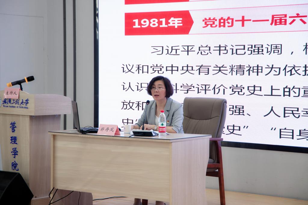 本网讯(通讯员 高梦雅 陈思)5月27日下午,为深入党史学习教育走实走深,引导广大师生学史明理、学史增信、学史崇德、学史力行,以昂扬的姿态、优异的成绩迎接中国共产党成立100周年,校“党的创新理论”宣讲团成员、校党委常委、副书记郑丹凤为师生党员作专题宣讲报告,报告会由机关党委书记郭昕主持。