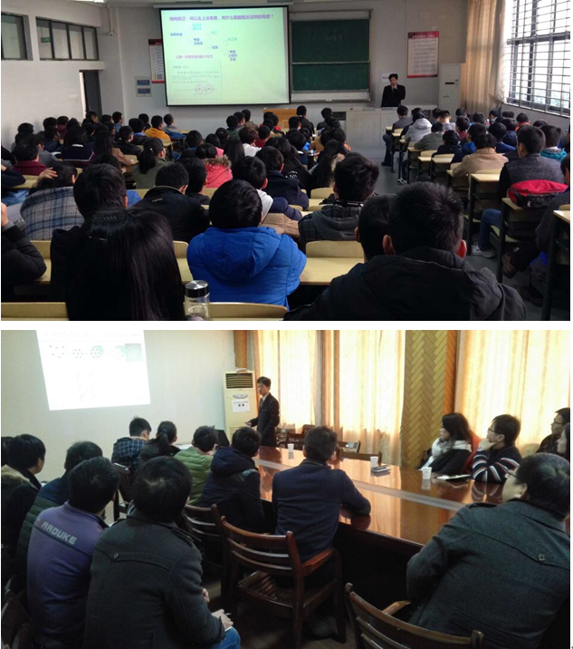 12月初何前军教授访问了母校,为材料学院本科生和研究生各做了一次讲座。3日抵汉后下午即前往流芳校区,结合个人的求学、科研与工作经历,为本科生做了“从纳米材料到纳米医学”的精彩报告。由于学生众多,讲座教室临时从L4112换到L4001,但教室还是挤满了学生。大家在好奇、赞叹之余,也从学习、生活、家庭以及爱好等各方面向何前军学长提出了一系列有趣的问题,何前军都一一做出了耐心、细致的解答,获得了同学们的一阵又一阵的热烈掌声。何前军教授最后勉励大家抓住当下、追求极致、不断攀登人生的高峰。