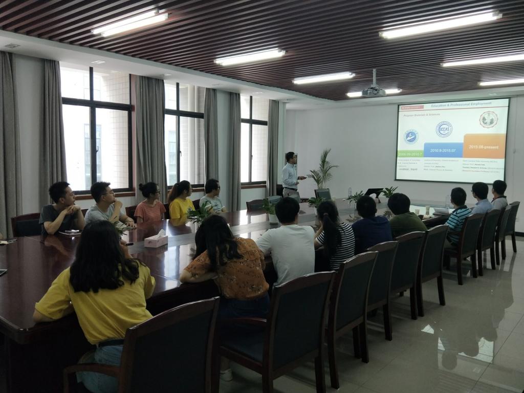 叶博士首先对有机/聚合物太阳电池的发展过程和工作原理进行了简单的介绍,然后从有机太阳能电池活性层形貌调控入手,深入剖析了有机光伏材料的分子间相互作用、聚集态结构与器件性能三者之间的相互关系对有机太阳能电池器件效率的影响,详细介绍了使用二次离子质谱和软X射线扫描透射显微镜两种方法探究非晶聚合物光伏体系的热力学相图以及相互作用参数的温度依赖性,并提出了有机太阳能电池中相互作用参数-相容性-器件性能三者之间的定量关系模型,最后介绍了绿色溶剂刮涂的非富勒烯有机太阳能电池的最新进展。整场报告深入浅出,气氛活跃,在场师生与叶博士进行了及积极的交流和探讨,受益匪浅。