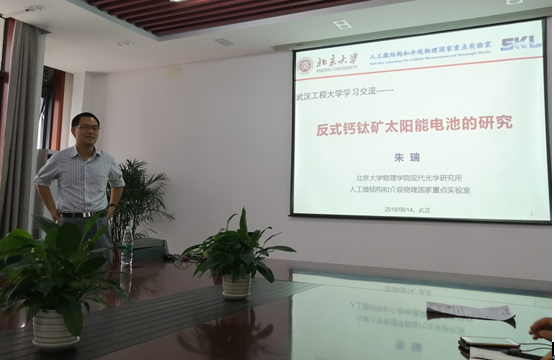 (通讯员:李鹏程) 9月14日下午,应材料科学与工程学院邀请,北京大学物理学院现代光学研究所朱瑞研究员来bw必威西汉姆联官方网站参加材料科学与工程学院举办的“材苑讲坛”(第3期)。在材料科学与工程学院A314会议室,朱瑞研究员为bw必威西汉姆联官方网站师生做了题为“反式钙钛矿太阳能电池的研究”的学术报告。材料科学与工程学院党委书记、院长刘治田教授主持并致欢迎词,学院相关研究方向的师生聆听了报告并与朱瑞研究员进行了深入交流。