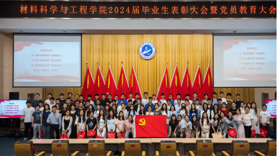 本网讯(通讯员 田明华)6月6日上午,材料科学与工程学院在四教多功能报告厅举行2024届毕业生表彰大会暨党员教育大会。学院院长江学良、党委副书记张琼、副院长熊礼威、赵洪阳,组织员余武明、黄克文,工会主席李鹏程,以及学院各系主任、班主任、导师代表和2024届全体在校毕业生参会。大会表彰毕业生中的优秀代表,毕业生向老师献花表达感谢,为毕业生党员上了离校前的最后一堂党课,师生依依惜别,互道祝福与珍重!