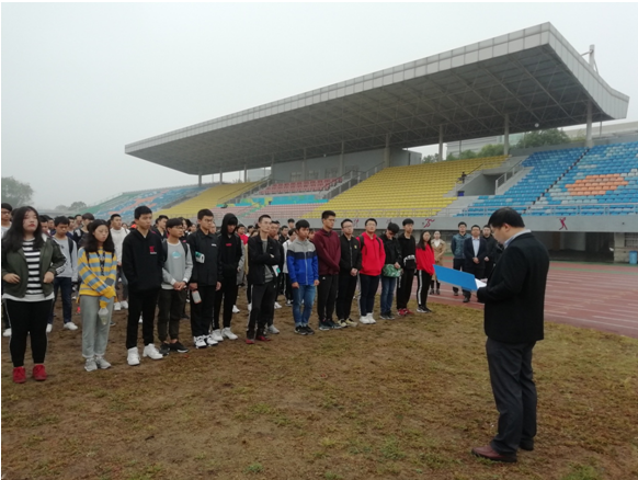 伴随着雄壮的国歌声五星红旗冉冉升起,全体师生肃立、唱国歌。全体新生在主持人的带领下进行爱国主义宣誓。E+材化班新生黎纪光提出新时代大学生要努力学习,饱含爱国情怀,励志报效祖国。
