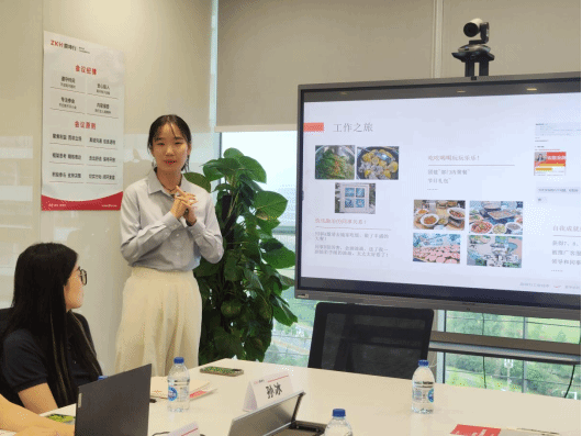 胡振双讲解了公司的人才理念、人才画像和人才培养体系,她以企业招聘方的身份向同学们介绍了企业所需人才的特质、能力,又以学姐的身份鼓励同学们认真思考、做好行业选择,在秋招中多去尝试、多去锻炼,争取早日收获心仪的offer。