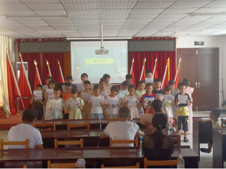 在龙泉村,志愿者们以“青春恰似火,扬帆正当时”为主题,开展结业典礼,孩子们上台表演;志愿者们也为他们精心准备了结业礼物,以此表达对小朋友们的不舍之情及深厚友谊。