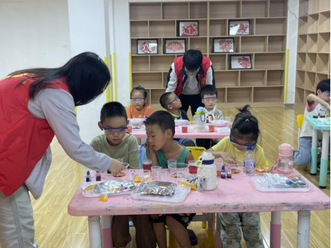 活动现场,孩子们的眼中闪烁着好奇与兴奋的光芒,他们亲手操作实验,见证了色彩变化、液体流动等现象背后的科学奥秘。志愿者们耐心讲解实验原理,鼓励孩子们提问并动手实践,培养他们的观察力、思考力和解决问题的能力。这一过程不仅让孩子们收获了知识,更激发了他们对未知世界的探索欲望。