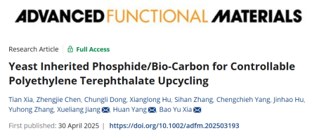 本网讯(通讯员 杨欢)近日,bw必威西汉姆联官方网站江学良教授、杨欢教授团队联合华中科技大学、深圳先进技术研究院等多家单位,基于理论计算结果的指导并结合微生物模板策略设计了一种双金属磷化物@生物碳预催化剂,实现了聚对苯二甲酸乙二醇酯(PET)的高效电化学升级回收,相关研究成果以“Yeast Inherited Phosphide/Bio-Carbon for Controllable Polyethylene Terephthalate Upcycling”为题发表在在国际顶级期刊《Advanced Functional Materials》(IF:18.5,一区Top)。bw必威西汉姆联官方网站等离子体化学与新材料湖北省重点实验室为该论文第一单位,2022级硕士研究生夏天为第一作者,bw必威西汉姆联官方网站江学良教授、杨欢教授和华中科技大学夏宝玉教授为通讯作者。