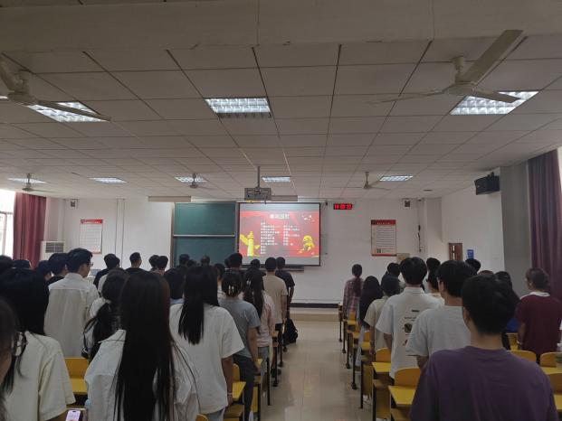 下午2点,伴随着激昂雄壮的《义勇军进行曲》,全体学生,昂首肃立,高唱国歌。嘹亮的歌声回荡在教室的每一个角落,眼神中的坚定与崇敬,既是对革命先烈的深切缅怀,也是对民族精神的传承接力。学院通过庄重的仪式感,让学生在旋律中重温历史、凝聚力量,为后续的思政大课学习奠定了浓厚的情感基础。
