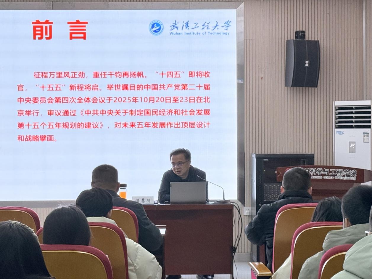 (通讯员:刘虎森)为深入学习贯彻党的二十届四中全会精神,引导全院师生切实把思想和行动统一到党中央决策部署上来,12月26日上午,校党委副书记(正厅长级)潘慧明在材料学院A326会议室作党的二十届四中全会精神专题宣讲报告。校党委组织部常务副部长王涛、材料学院领导班子成员、各党支部书记、教工党员代表及学生党员代表参加宣讲会,会议由学院党委书记邓欢主持。