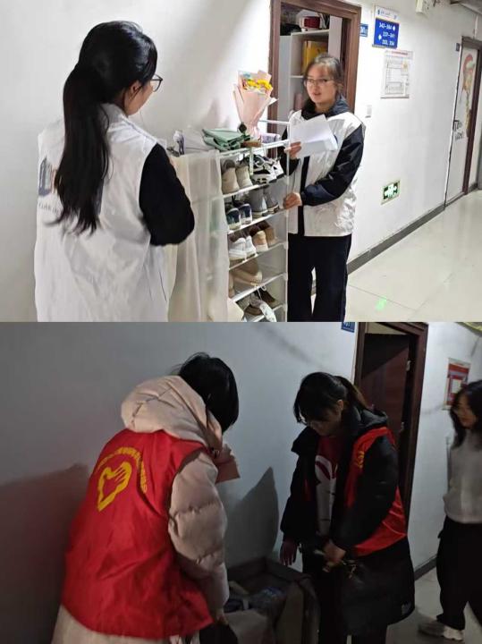 行动前,志愿者团队梳理了前期排查出的楼道堆放杂物问题清单,明确复查重点与帮扶职责。行动中,志愿者们携带排查记录,对相关宿舍楼层开展回访。面对复查中发现的个别宿舍仍存在鞋架、衣架外置等问题,志愿者们摒弃简单提醒的模式,主动上前提供帮助,与同学们一同将堆放物品安全移入宿舍内妥善安置,手把手协助整理公共楼道空间。