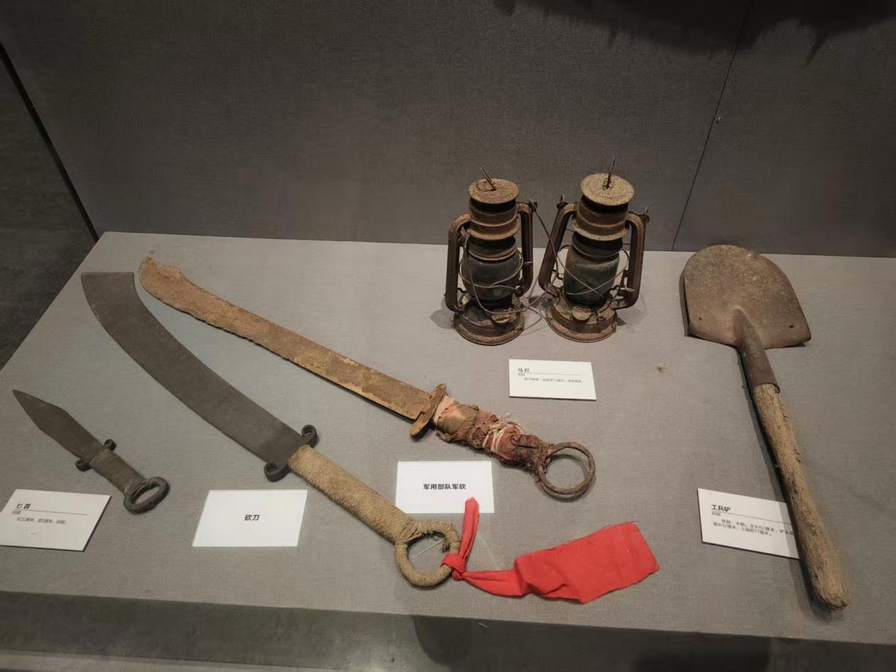 在纪念馆的尾厅里,玻璃展台中静静陈列着三件“硬核”文物:一把刃口卷缺的军用砍刀、一柄被弹片削去半边的工兵铲、一把刀柄磨得发亮的刺刀。展台旁泛黄的卡片上,一行褪色的毛笔字依稀可辨。队员黄艳轻触展柜,指尖传来阵阵冰凉,胸口却滚烫不已——今日我代全队收下这份锋锐,来日定将它熔进科研攻坚的熔炉,铸成材料强国的利刃。