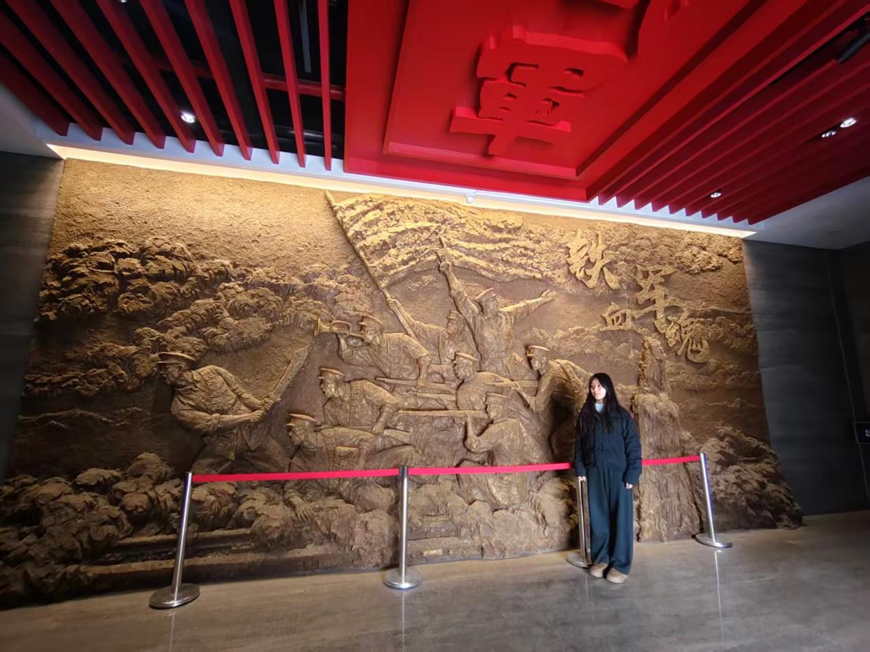 怀着崇敬之心,队员黄艳踏入纪念馆序厅。巨幅浮雕《铁军冲锋》扑面而来:乌云压境之下,叶挺独立团的官兵们肩扛云梯、脚踏铁索,那穿越百年的呐喊声仿佛就在耳畔回荡。她抬头望向浮雕下方,“22个半小时拿下汀泗桥”一行鎏金大字赫然在目,指尖轻触旁边的年表时,1926年8月26日的枪炮声瞬间在耳边重启——这场由共产党人率先登城的决定性战役,也成为了她驻足凝思的焦点。
