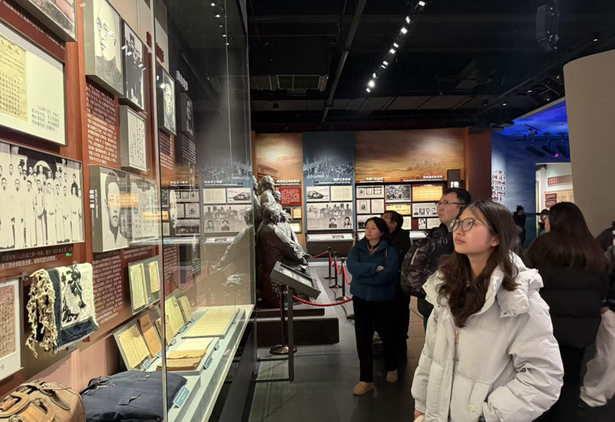 在“中共一大代表人生轨迹”专题展区,成员们通过图文资料深入了解了十三位代表各异的人生道路与初心坚守,于历史淘洗中感悟“红船精神”的深刻内涵与当代价值。开天辟地、敢为人先的首创精神,坚定理想、百折不挠的奋斗精神,立党为公、忠诚为民的奉献精神——红船精神不仅属于历史,更始终映照着一代代共产党人的初心。在新时代的征程上,红船精神既体现于改革前沿的开拓创新,也体现于平凡岗位的默默坚守,更体现于扎根基层的为民情怀,于无声处铸就非凡。
