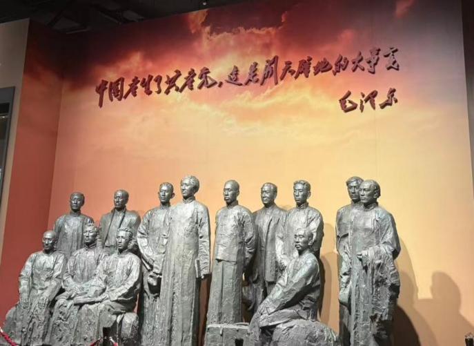 跟随讲解,实践团成员步入“开天辟地”展厅。从“南陈北李,相约建党”的历史画卷,到各地早期党组织分布图,详实的史料让成员深切体会到建党前夕的曲折探索与思想准备。行至“红船起航”展区,按比例复原的红船模型前,成员们静静聆听中共一大代表们辗转南湖、宣告中国共产党诞生的故事。正是这艘小小的红船,承载起民族复兴的初心,划破旧中国的漫漫长夜,点亮了亿万人民心中的希望之光。