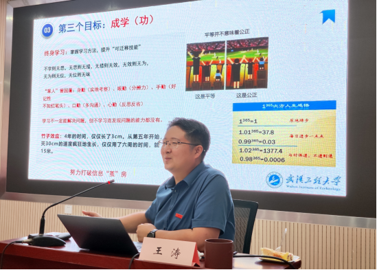 典礼结束后,书记、院长为同学们上开学第一课。王涛以《漫谈大学》为题,讲述了什么是大学,大学的职能是什么,如何度过大学生活等内容,鼓励新生尽快适应大学生活、明确目标、找准方向、健康成长成才。