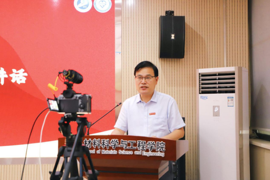 江学良从历史沿革、专业发展、人才培养等方面,向新生介绍了学校、学院的基本情况。他详细讲解了工大校徽校训,材料院徽院训、班风学风以及全面过硬、多面闪光的“钻石”文化,帮助学生了解专业特色,引导他们向榜样学习,为成为材料的未来之星而努力奋斗。