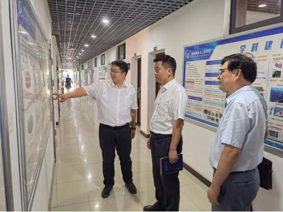 学院班子陪同朱青林参观了学院宣传长廊和湖北省光电与新能源材料工程技术研究中心。
