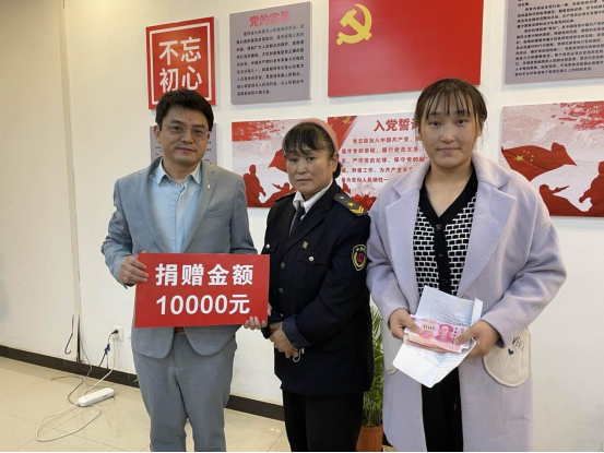 杨佳峰向贾鑫和她妈妈转赠了郭明义爱心团队捐款1万元,江学良、张琼给贾鑫送上棉被、牛奶、豆浆等爱心物资。