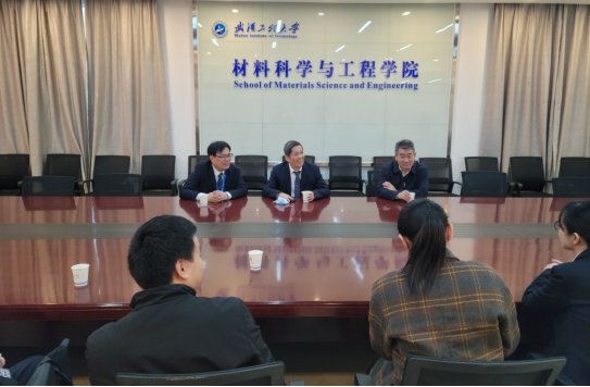 随后一行人陪同杨院士在材料学院314会议室进行了座谈,江学良简要汇报了学院的办学历史、基础条件、师资队伍和已取得的成果,杨院士充分肯定了学院在各方面取得的成绩,回顾了自己与工大的深厚渊源,并希望今后在科学研究、科技攻关和人才培养方面能增进交流、加强合作,取得更好成效。