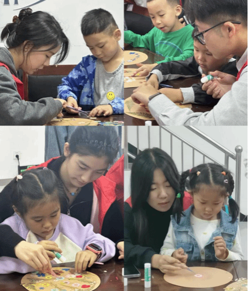 在志愿者的帮助和陪伴下,小朋友们都制作出自己喜欢且满意的作品,每一幅作品都有独特的结构和色彩,都代表着小朋友们不同的性格特点。