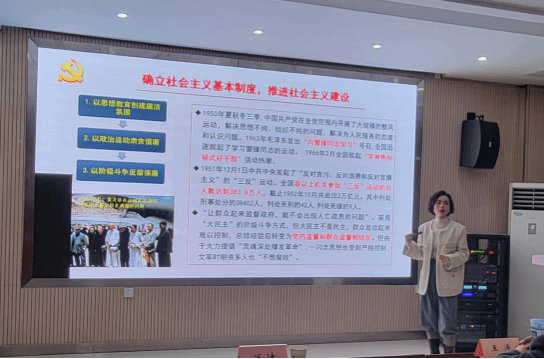 马克思主义学院副教授兰洁以《领悟政治优势,提升政治能力 不断推进新时代党的建设新的伟大工程》为题,通过极具感染力的授课为参训学员全面梳理百年党史历程,进一步丰富了大家的党史知识,提升了理论水平。