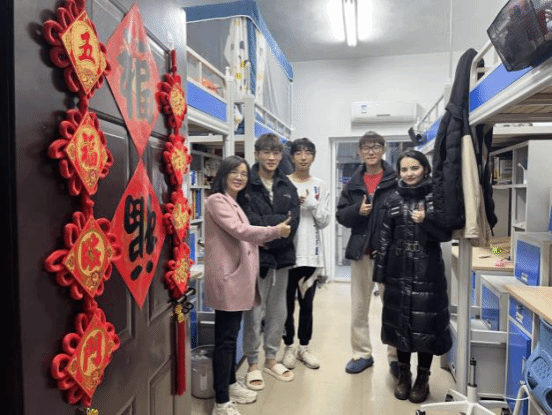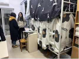 本网讯(通讯员 安佰谦)为进一步提升寒假期间学生安全意识、文明素养,不断优化育人环境,维护校园和谐稳定,材料学院党委副书记张琼以及各年级辅导员深入学生寝室,排查宿舍安全隐患,营造良好和谐的宿舍环境,返乡归途中,要“开心”更要“安心”。