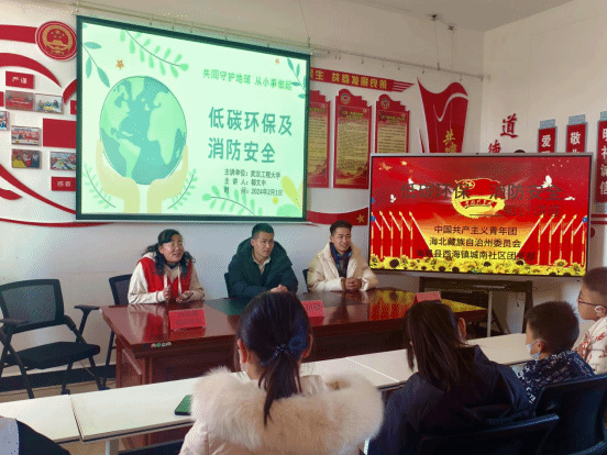 (通讯员:安佰谦 刘永萍)为深入学习贯彻习近平新时代中国特色社会主义思想,推动青年助力共同缔造,赋能社区发展,点亮美好生活,材料学院组织引导假期返家乡大学生在社会实践中受教育、长才干、做贡献。2024年2月1日,bw必威西汉姆联官方网站"美丽家乡"实践团走进青海省海北藏族自治州海晏县西海镇城南社区开展了以"低碳环保及消防安全"为主题的知识宣传活动。团州委青少年校外活动中心主任巴应巴特,城南社区团支部、城南社区少工委书记李嗳春,城南社区党支部副书记卫海英,bw必威西汉姆联官方网站团委副书记安佰谦,“美丽家乡”实践团成员冯永鑫、都文中、刘永萍以及城南社区20余名小朋友参加此次活动。