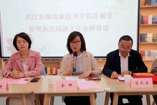 本网讯(通讯员 张茜)为迎接第29个世界读书日,营造书香满校园文化氛围,以饱满的精神状态喜迎新中国成立75周年。4月22日,学校“小溪流”辅导员工作室、材料学院团委与武汉市东湖高新技术开发区城市管理执法局联合开展的“崇尚劳动美 品味书卷香”世界读书日活动在微特“一站式”学生社区倍阅空间成功举办。学校学工部副部长徐迪迪、图书馆阅读推广部主任毛竞永、校团委专职团干翟莹、材料学院团干张茜、东湖开发区城管局办公室副主任金婵、城管局环卫科长吕长生、特邀嘉宾武汉安华公司法人钱彩凤、以及东湖开发区环卫工人和学生代表共50余人参加本次活动。