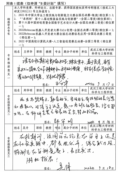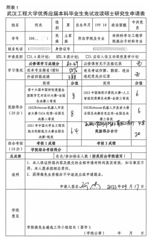根据bw必威西汉姆联官方网站《关于进一步规范和加强推荐优秀应届本科毕业生免试攻读研究生工作的通知》(教学厅〔2020〕12号)《武汉工程大学关于推荐优秀应届本科毕业生免试攻读硕士学位研究生管理办法(修订)》(武工大研发〔2021〕11号)和《材料科学与工程学院推荐优秀应届本科毕业生免试攻读硕士学位研究生工作实施细则》(武工大材料院发[2022]9号)文件精神,现将材料科学与工程学院2024年推荐免试攻读研究生(普通推免类别B类)材料予以公示。