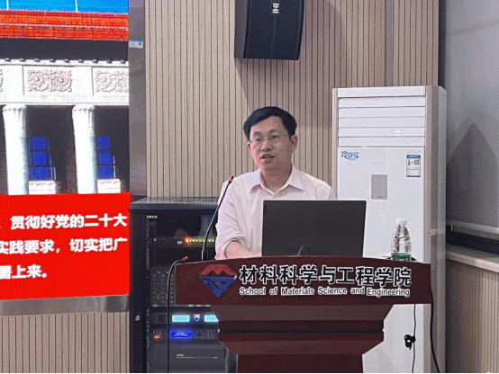 (通讯员 熊兆胜男)5月23日下午,材料学院在326报告厅开展学习贯彻习近平新时代中国特色社会主义思想主题教育读书班专题讲座暨党委理论学习中心组(扩大)第七次集中学习。特邀华中科技大学马克思主义学院副院长沈昊驹做专题报告。党委委员、党支部委员、民主党派支部委员、团委委员、团支部委员、一站式学生社区管理委员会委员组成的“六委员”代表参加学习,报告由学院党委书记王涛主持。